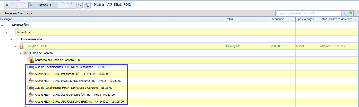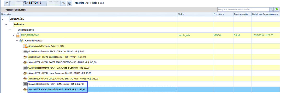 Vide valores de FECP no Encerramento de Indiretos após alteração, com definição do respectivo filtro como 02-ST/DIFAL.