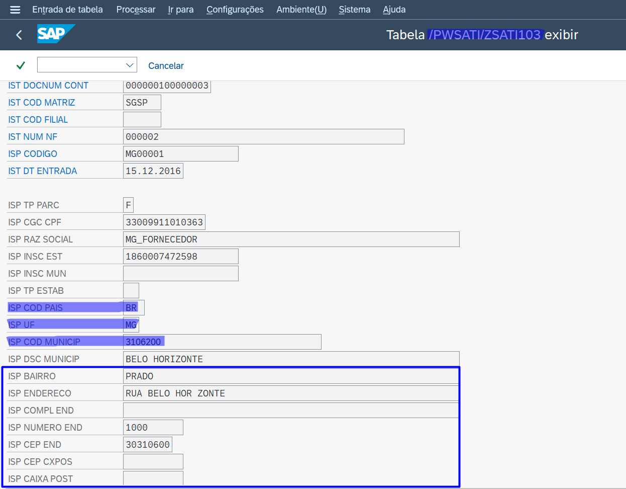 Foi refeito a lógica para a busca dos dados de endereço dos parceiros tendo como origem SAP as principais informações do cadastro de fornecedor e endereço, assim chegando com as informações corretas na tabela /PWSATI/ZSATI103.