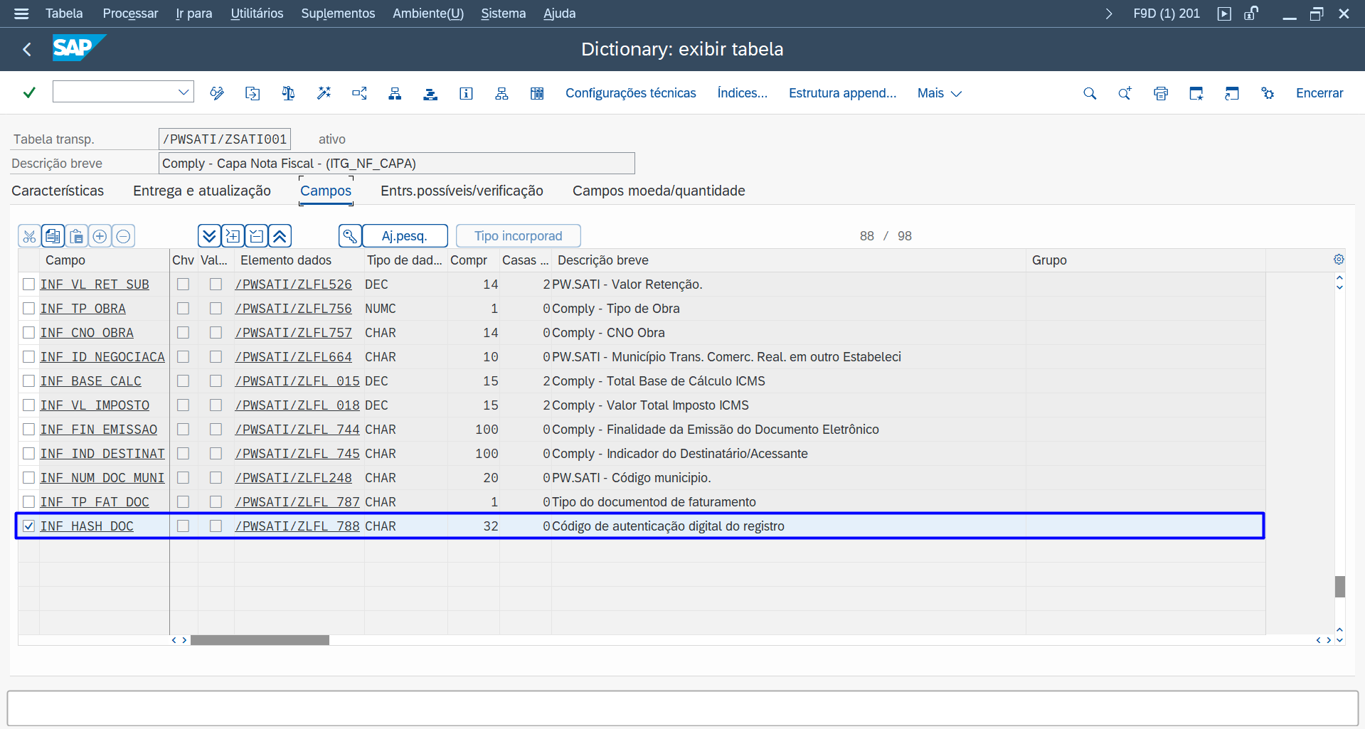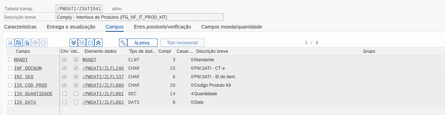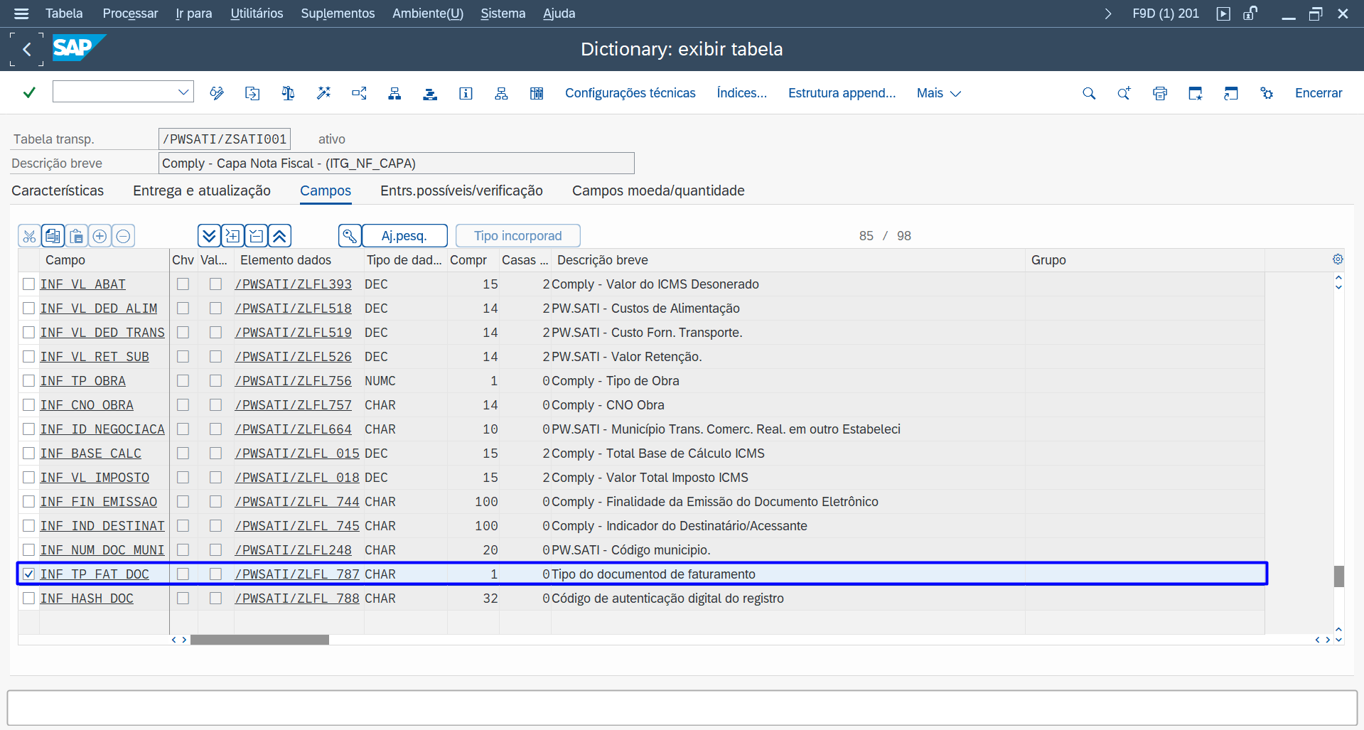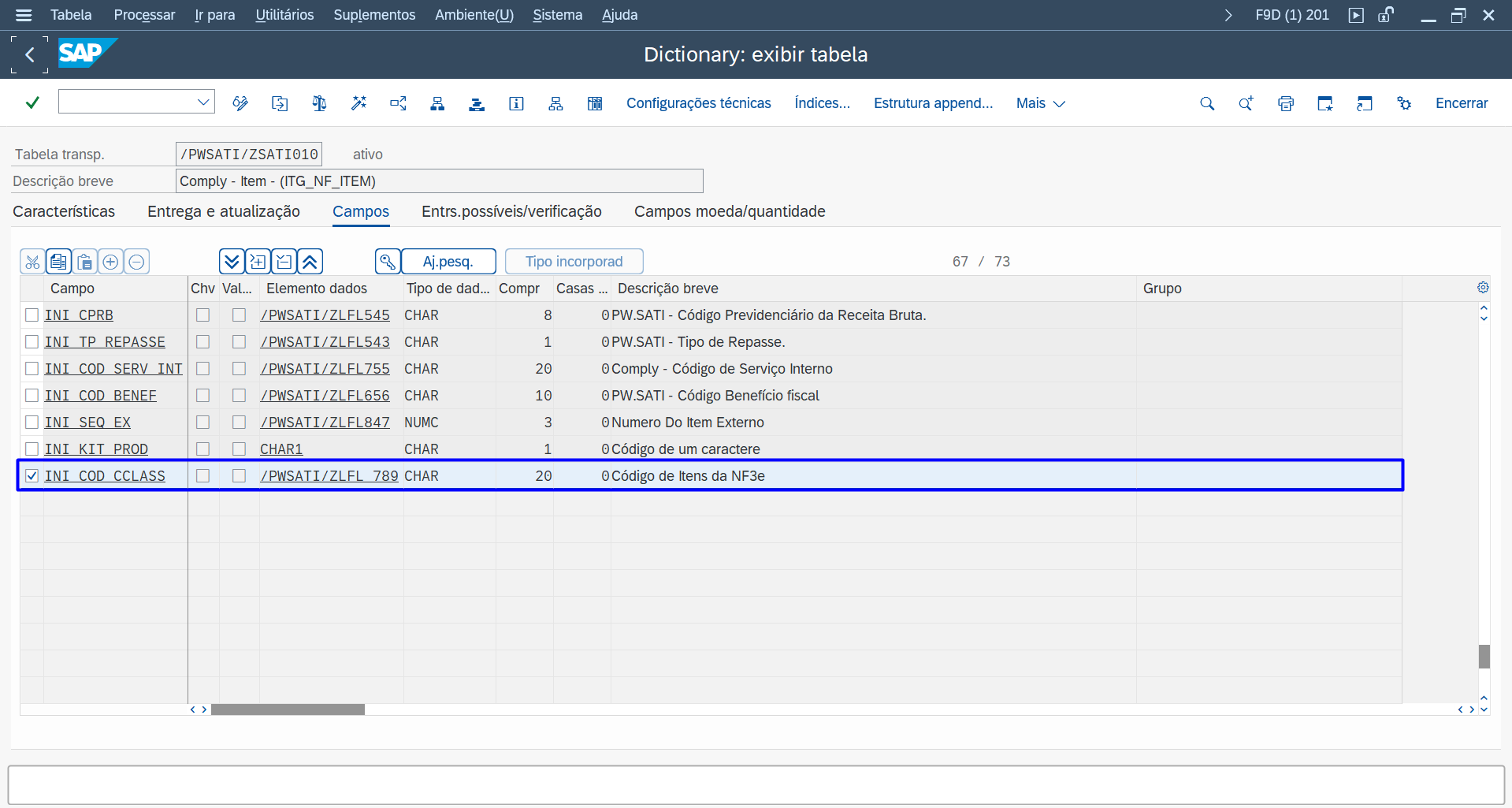 A seguir, apresenta-se a tabela /PWSATI/ZSATI041: