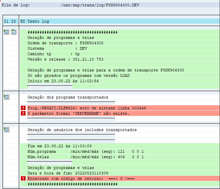 Acontecia, durante o transporte da Request F9DK904300, a finalização com o erro de sintaxe na linha 003446 no Programa /PWSATI/ZLFM926, o Monitor.