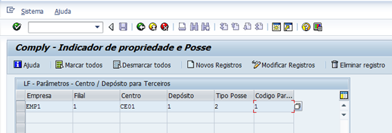 Para atender ao Estoque de Subcontratação pode-se configurar o indicador de propriedade de Posse na nova Transação /PWSATI/ZLFM042 (Indicador de Propriedade e Posse).