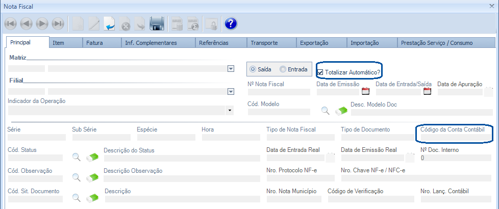 Se o campo for desmarcado, o cálculo dos Valores Totais da Capa não serão feitos automaticamente e se for necessário será preciso acessar o ícone Valores Totais