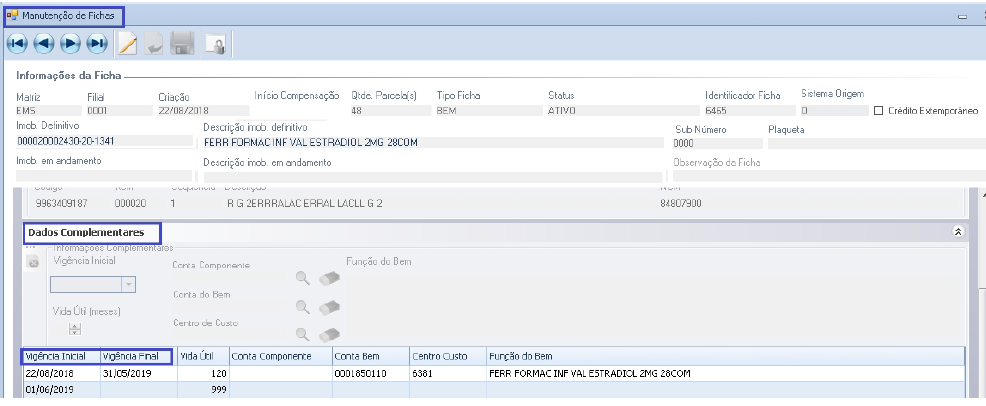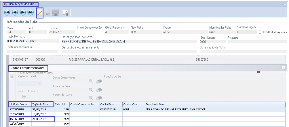Melhoria na tela de Manutenção de Fichas de CIAP (Caminho: Apuração > CIAP > Manutenção de Fichas > Dados Complementares) quando possuir mais de um Grid no campo de dados complementares com a data de vigência final preenchida, permitirá a exclusão da mesma se não houver nenhum período encerrado após a vigência inicial.