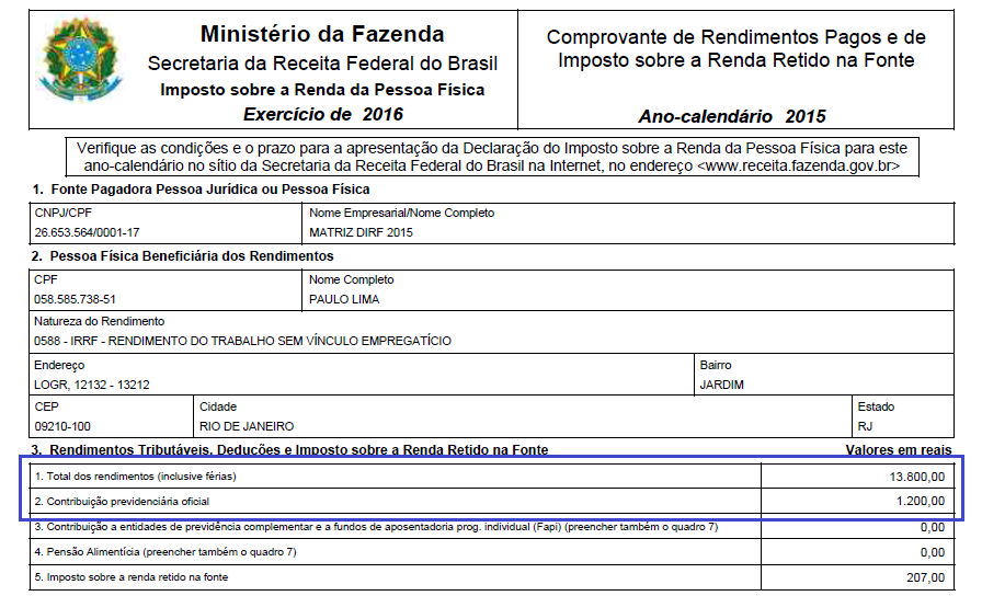 Descrição da Nota: DIRF 2016 - Tratamento realizado para somar a retenção do INSS no registro RTRT quando a base de cálculo do IRRF corresponder ao rendimento bruto deduzido do valor da retenção do INSS.
