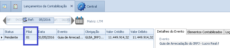 Criada coluna no grid de lançamentos, para indicar a filial na qual o lançamento foi gerado: