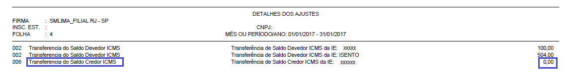Descrição da Nota: Tratamento efetuado na centralização de Saldos de ICMS, que gerava indevidamente ajustes de transferência de saldo credor com valor zero (0,00).