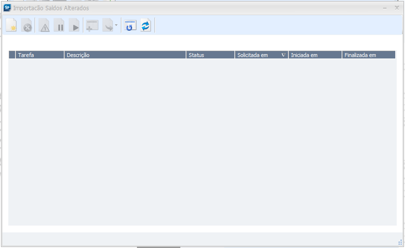Será criado uma tarefa de importação. Caso todas as linhas do arquivo sejam carregadas, a tarefa será finalizada com o status 'Processada'. Caso uma ou mais linhas não seja carregada por erro de dados ou layout, assim como erros de formatação do nome do arquivo texto, a tarefa finalizará com o status 'Finalizado com Erro'. Para este último caso, acesse o botão Propriedades da Tarefa e acesse a aba Erro ou Log para verificar o motivo do erro.