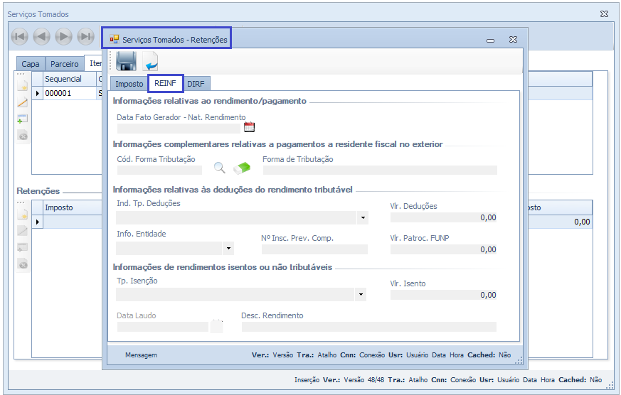 A aba REINF/DIRF foi dividida em 2 abas e passa a ser apresentada como REINF e DIRF.