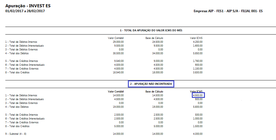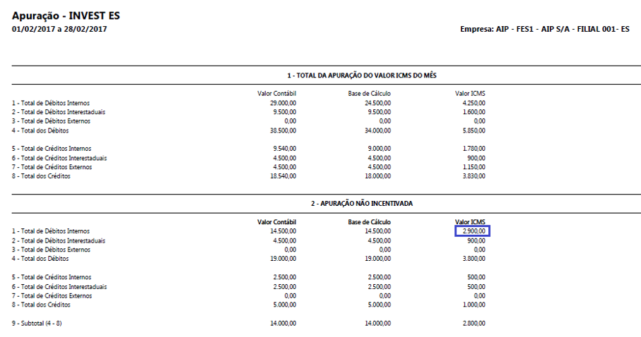 Apresentava o valor do imposto duplicado no quadro 2 - Apuração Não incentivada, para produtos que continham mais de uma vigência, conforme exemplo: