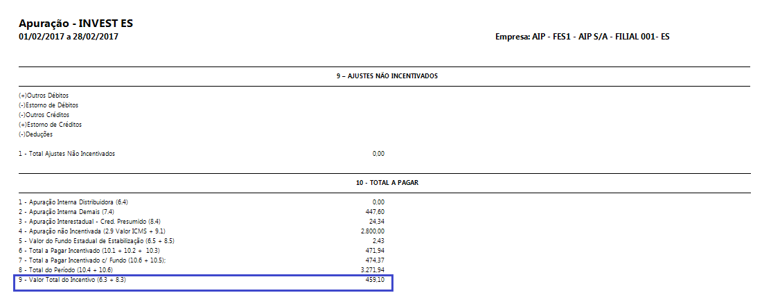 Descrição: 9. Valor Total do Incentivo (6.3 + 8.3)