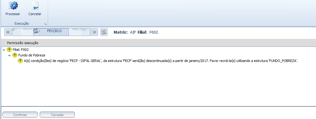 “A(s) condição(ões) de negócio da estrutura "FECP" será (ão) descontinuada (s) a partir de janeiro/2017. Favor recriá-la(s) utilizando a estrutura “FUNDO_POBREZA”'.