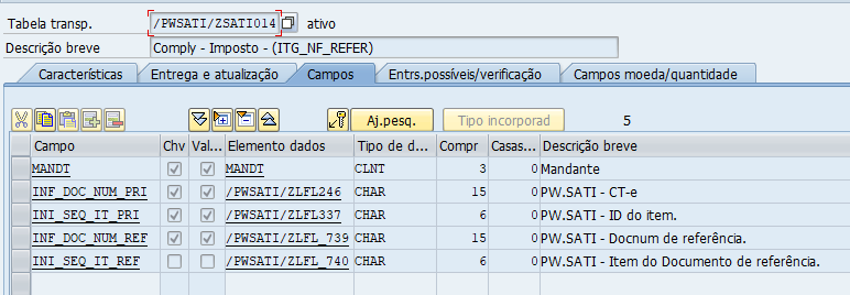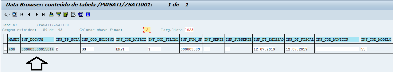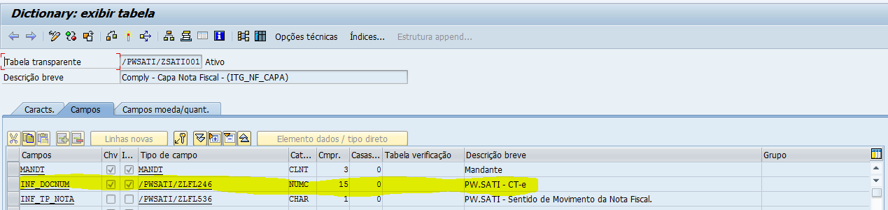 A informação será migrada para a tabela abaixo /PWSATI/ZSATI014, na qual passou a ter um controle chaves diferentes, adicionando o campo INF_DOC_NUM_REF como chave: