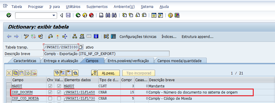 - Componente Abap Extrator Indiretos/Exportação e CIAP - Alteração efetuada para o tipo do campo do DOCNUM para CHAR. Detectado a necessidade da alteração do tipo do campo DOCNUM de NUMC para CHAR nas tabelas ABAP’s para não ocorre erro no momento da migração de dados ao utilizar o conector SAP Conector 3.0.
