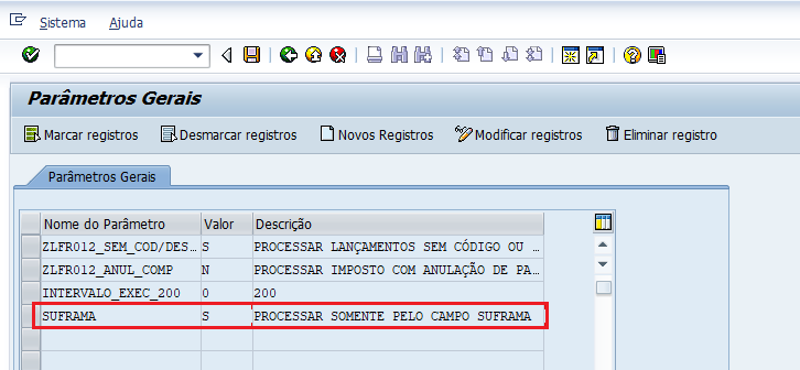 Disponibilizado o parâmetro ‘SUFRAMA’. O mesmo deverá ser inserido manualmente na transação /PWSATI/ZLFM078 na aba de parâmetros gerais.