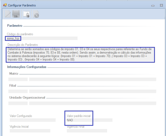 Descrição do parâmetro: Determina se serão somados aos códigos de imposto 01, 03 e 04 os seus respectivos pares referentes ao Fundo de Combate à Pobreza (impostos 70, 83 e 88, nesta ordem). Sendo assim, a demonstração e cálculo das informações no sistema obedecerão à seguinte
