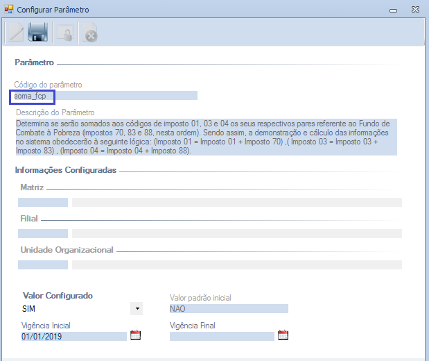Para atendimento a esta demanda foi criado o parâmetro “soma_fcp”, que determina a data inicial em que deverão ser somados aos impostos principais, os valores de Fundo de Pobreza destacados em nota fiscal.