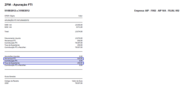 Apuração Zona Franca;