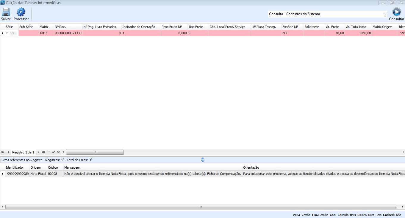 Foi criada uma validação na Interface de NF Indiretos, que considera os vínculos de um Item das Notas Fiscais, conforme a imagem a seguir: