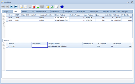 Na inclusão de mais de um item na nota fiscal, a informação do campo Lançamento da aba Item da tela “Nota Fiscal”, do primeiro item inserido estava sendo excluída.