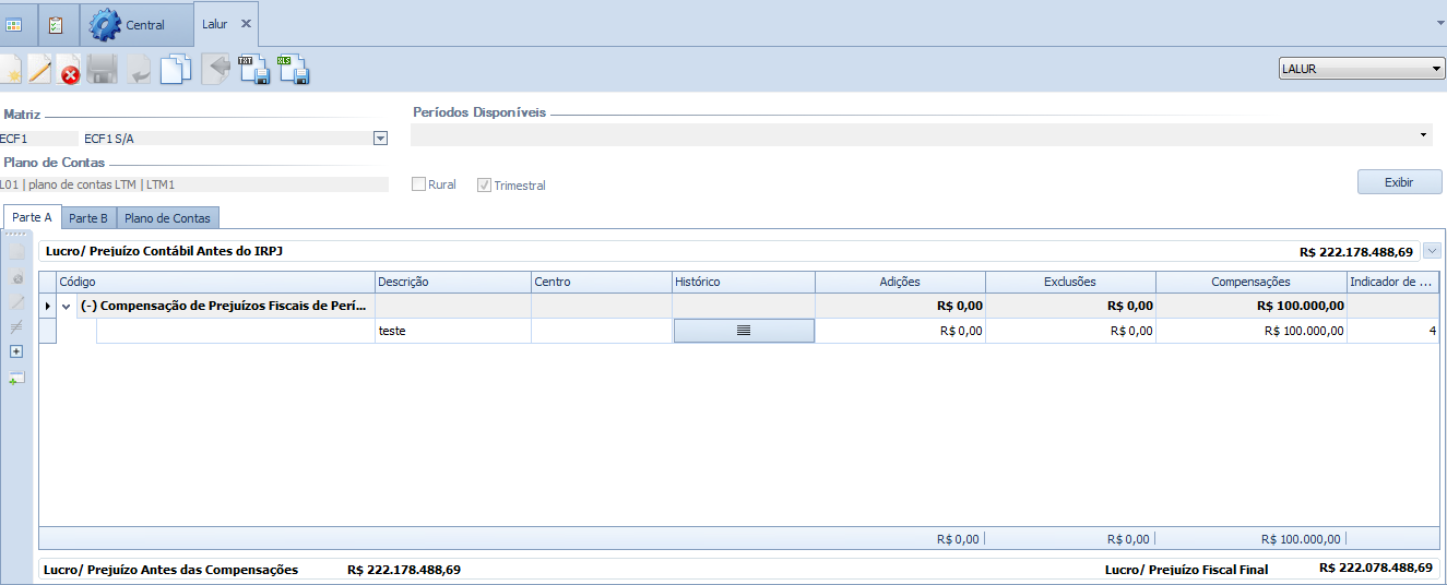 Quando não havia adições ou exclusões na parte A do LALUR, somente compensação, ocorria erro na apuração: