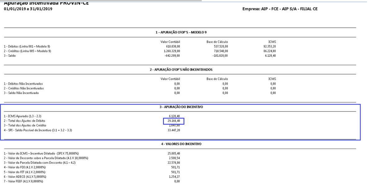 Apuração PROVIN/CE valor do Débito R$ 29.166,40