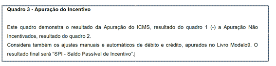 Calculo PROVIN/CE- Quadro 3 Regra Apuração Incentivo.