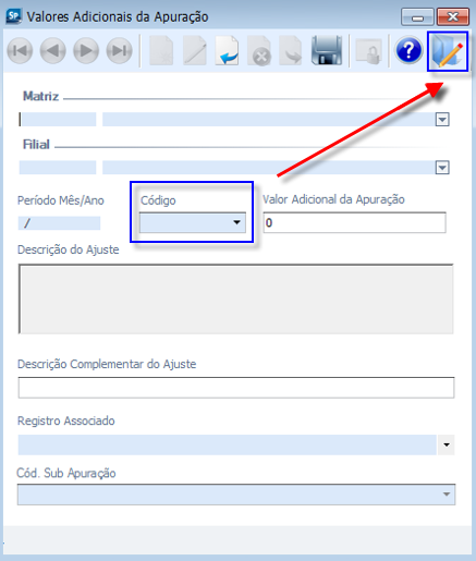 Desta forma, se o ajuste desejado para a geração dos registros E115 ou 1925 não for exibido no campo "Código" da tela "Valores Adicionais da Apuração", poderá ser inserido através desta tela.