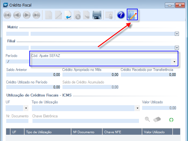 Desta forma, se o ajuste desejado para a geração do registro 1200 não for exibido no campo "Cód. Ajuste SEFAZ" da tela "Crédito Fiscal", poderá ser inserido através desta tela.