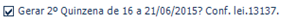 Para apurar a 2º quinzena parcialmente, conforme solicitado pela Lei 13.137, selecionar a seguinte opção: