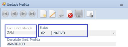 Atualização da tela Unidade de Medida, para não mais demonstrar as unidades Inativas.
