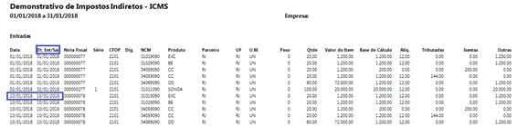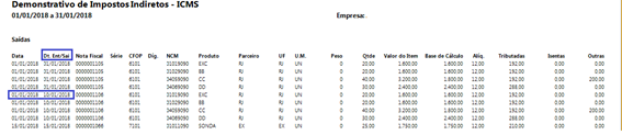 Este relatório demonstra os valores dos Impostos Indiretos por item. Lista os dados do imposto selecionado em tela.
