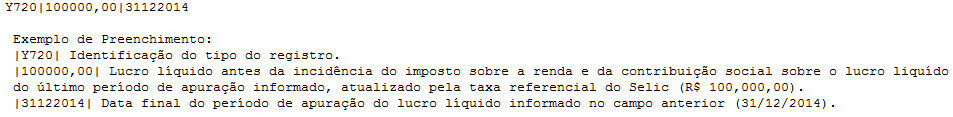 Descrição da Nota: Inserção do registro Y720 no Bloco Y para atendimento do SPED ECF.