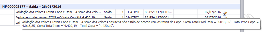 Descrição da Nota: Correção na gravação de Log da Validação e nas validações: 00069, 00083, 00091 e 00092.