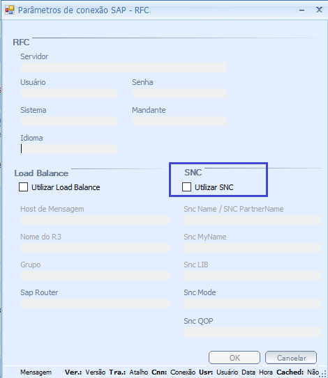 Vejam também, que a Tela de Sistema Remoto, possibilitará a configuração dos parâmetros de utilização da SNC, imagem a seguir: