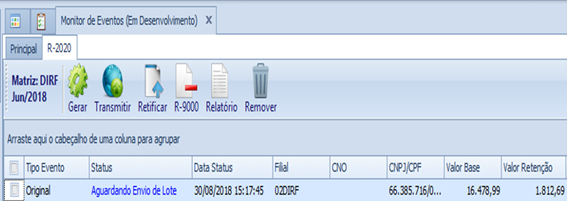 Neste caso o valor do processo será o resultado da somatória dos Impostos Não Retidos informados em cada Processo.