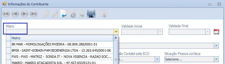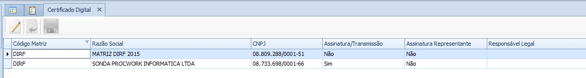 A apresentação dos dados na tela de Certificado Digital está de acordo com o cadastro do CNPJ da Matriz, da tabela de Certificado e não de acordo com o Código da Matriz.