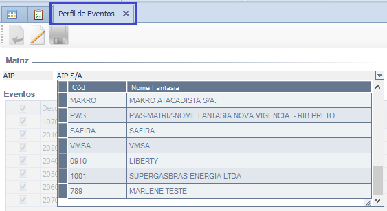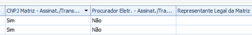 As telas abaixo foram tratadas para não demonstrar as Matrizes que o usuário não tem acesso a nenhuma Filial.