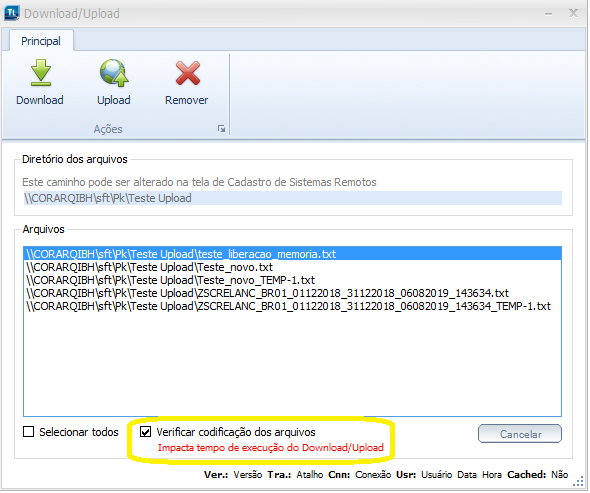 Essa rotina também oferecerá a opção da verificação da codificação dos arquivos txt a serem transferidos, conforme destacado, mantendo a informação de que sua utilização influenciará em sua performance.