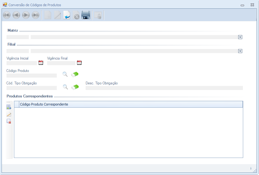 Desenvolvimento da tela Conversão de Códigos de Produtos com a finalidade de permitir a conversão de códigos de produtos, quando for necessário correlacionar códigos de produtos diferentes.