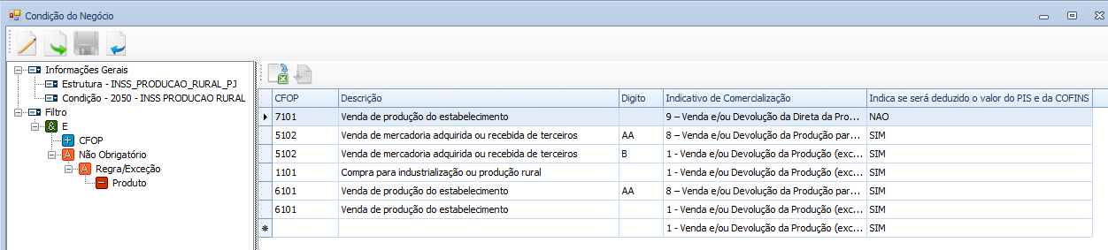 Cadastrar os CFOP’s das Notas Fiscais de Venda de Mercadoria da Produção Rural e de Devolução de Venda de Mercadoria da Produção Rural.