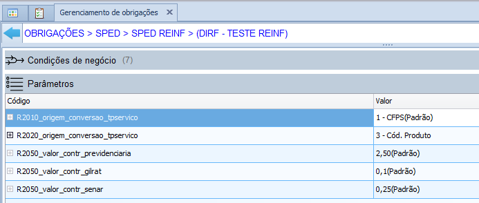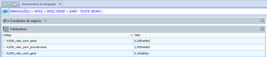 Na tela de Gerenciamento de Obrigações devem ser realizadas todas as configurações para a geração do evento R-2050.