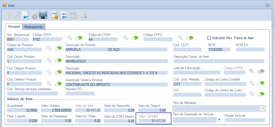 Para cada CFOP será necessário preencher os seguintes colunas: