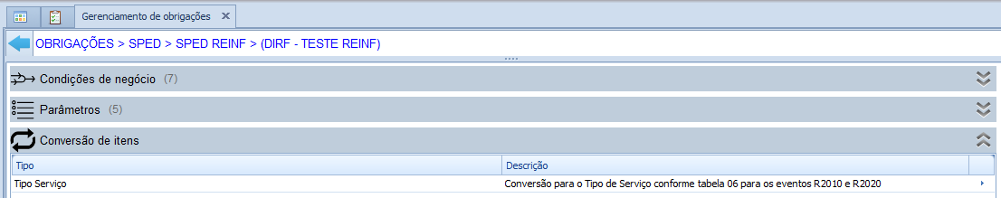 Menu: Obrigações > Processos > Gerenciamento de Obrigações > Obrigações > SPED > SPED REINF