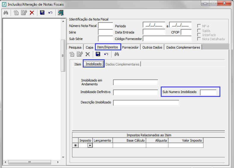 A aba Imobilizado é demonstrada apenas nas operações de Entradas.