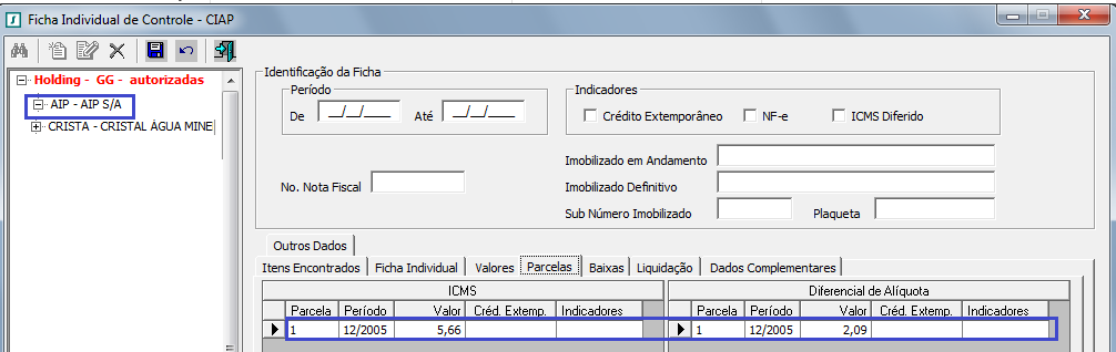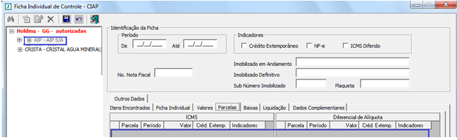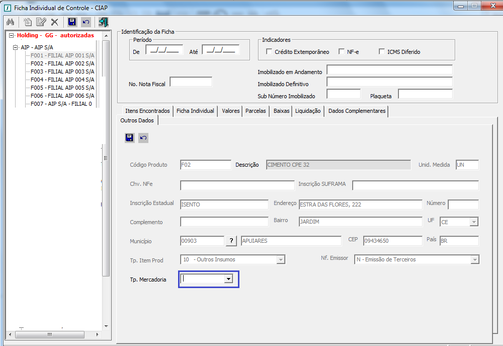Descrição da Nota: Tratamento efetuado na tela de Manutenção de Fichas, para visualizar as parcelas na seleção por Matriz e para gravar dados do campo Tp_Mercadoria na tabela CIAP Livro NF.