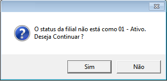 Descrição da Nota: Inclusão de mensagem de alerta caso a filial esteja com status diferente de 01 - Ativo.