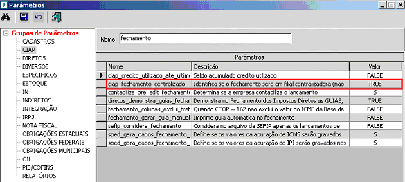 1. Definir o parâmetro CIAP_FECHAMENTO_CENTRALIZADO como “TRUE”.