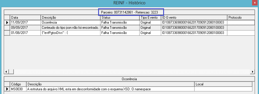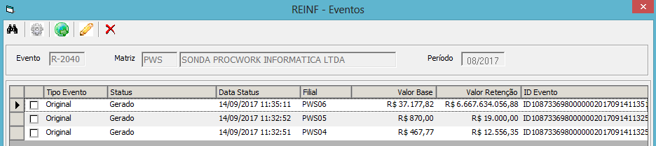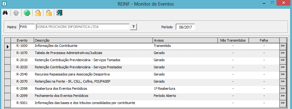 Nesta parte do Monitor os eventos são demonstrados individualmente de acordo com o agrupamento solicitado no leiaute de cada registro.