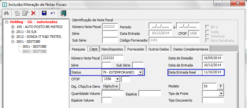 Efetuada melhoria na tela de notas fiscais de entrada, inclusão do Status 79-EXTENPORANEO e validações conforme abaixo: