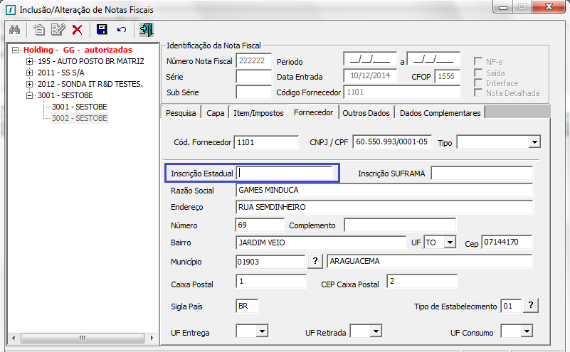 Descrição da Nota: Melhoria na tela, inclusão do Status 79 - Extemporâneo e retirado à obrigatoriedade de preenchimento do campo Inscrição Estadual.